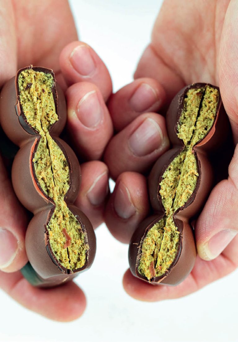 Pistacja z sosem pistacjowym na białej czekoladzie oraz pikantno-słodkimi orzeszkami pistacji